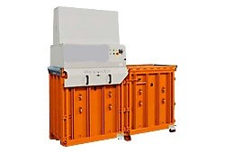 The cardboard press is a large, top-loaded baler for compacting cardboard or other materials, featuring either a single chamber or a multi chamber system. The compactor is usually supplied as a hydraulically driven, twin chamber compactor for plastic and cardboard, equipped with a control panel and emergency stop. The press head is easy to slide sideways and position over either chamber.